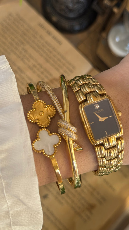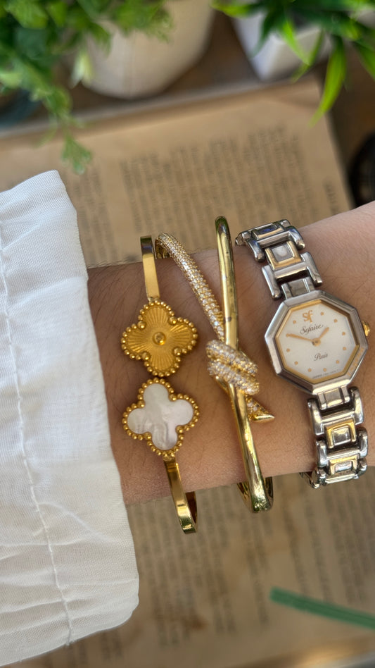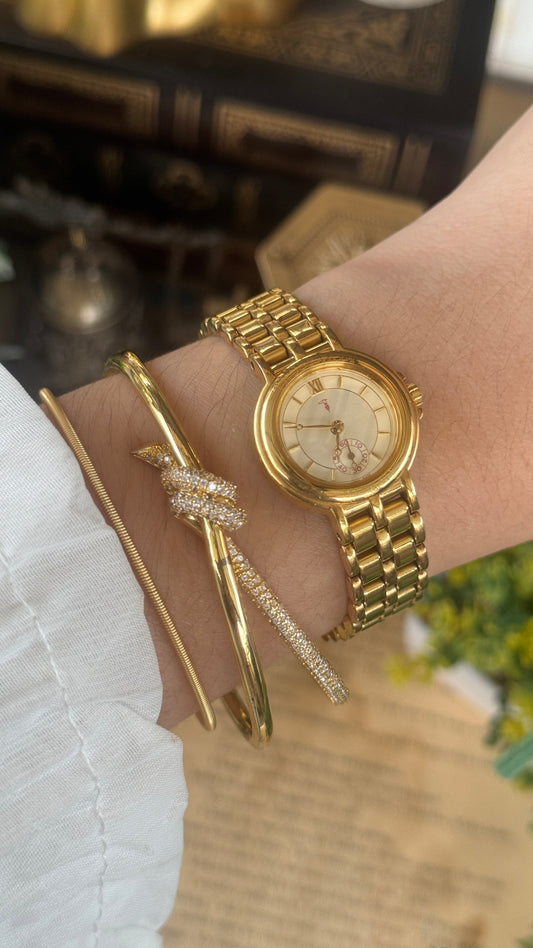Vintage Gucci Swiss 1500L Bangle Watch in Gold Tone Mother of Pearl Dial Quartz