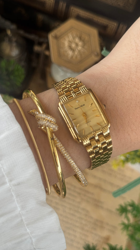 Vintage Pierre Mode Classic Tank Watch in Gold Tone Quartz