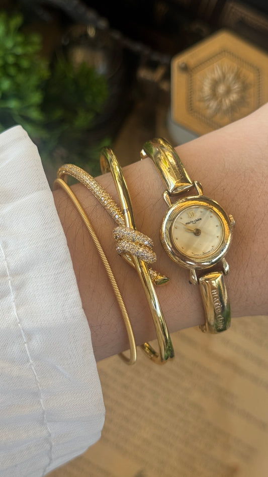 Vintage Dainty Marie Claire Brand Engraved Semi-Bangle Watch Quartz