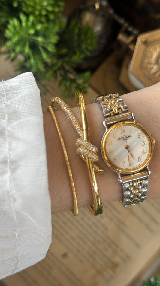 Vintage Marie Claire Paris Minimalist Watch in Two-Tone Quartz