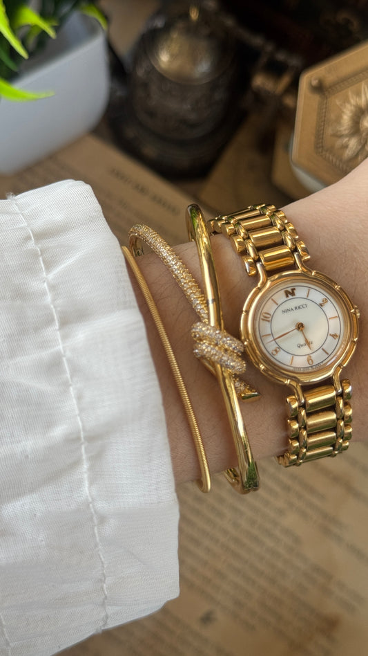 Vintage Nina Ricci Rail Link Bracelet Watch in Gold Tone Quartz