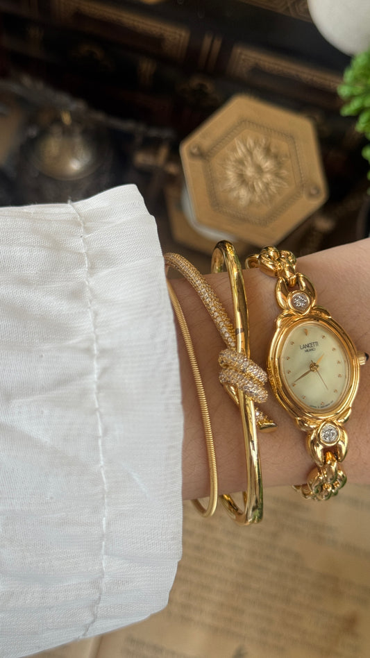 Vintage Dainty Lancetti Milano Rhinestone Accent Watch in Gold Tone Quartz