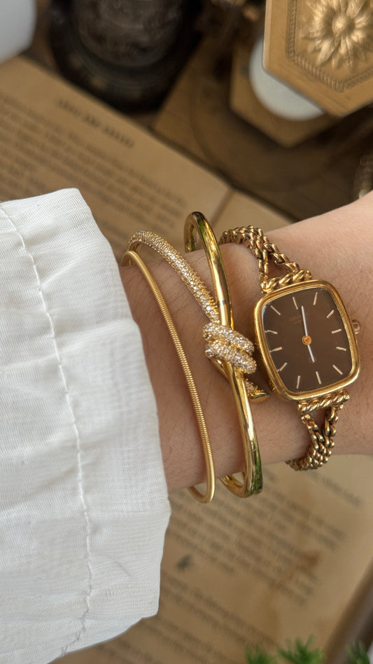 Rare Vintage Orient Rope Mini Tank Watch in Gold Tone Choco Brown Dial Quartz