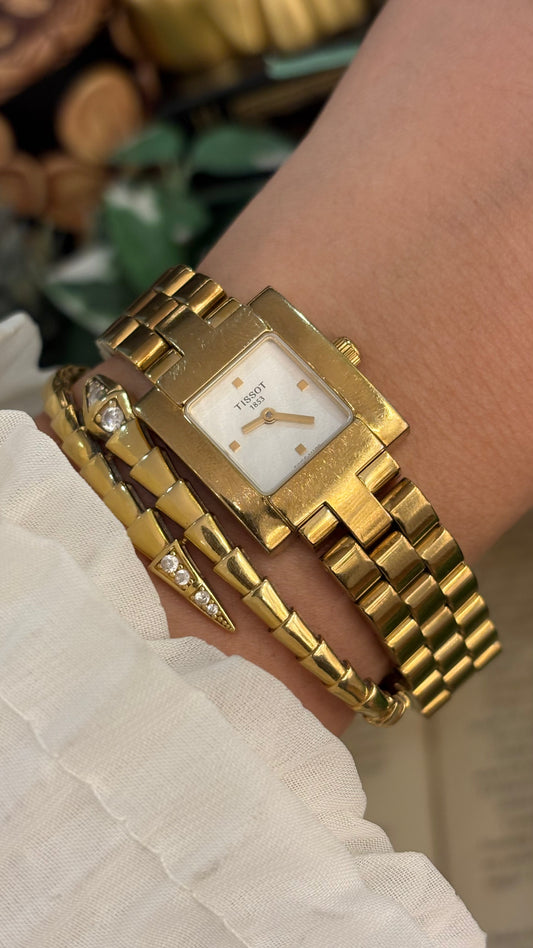 Rare Vintage Tissot Swiss Mini Tank Watch in Gold Tone Textured Dial Quartz