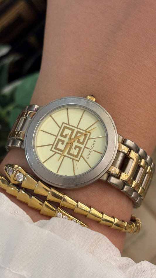 Rare Vintage Givenchy Swiss Mens Classic Watch in Two-Tone Logo Dial Quartz