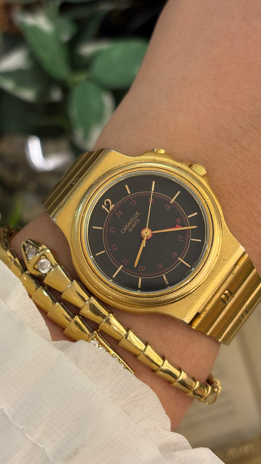 Rare Vintage Caravelle by Bulova Swiss Mens Classic Watch in Gold Tone Quartz