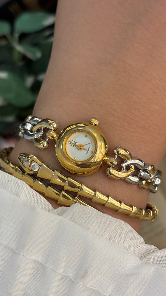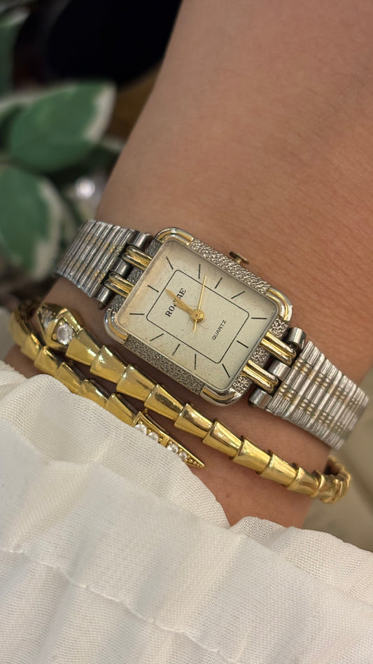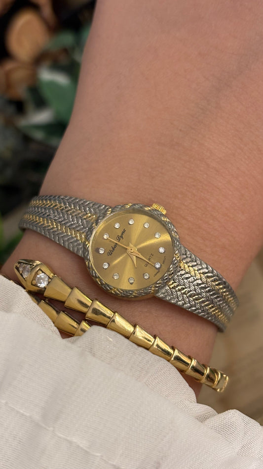 Rare Super Dainty Vintage Elegant Heel Intertwined V Bracelet Watch in Two-Tone Quartz