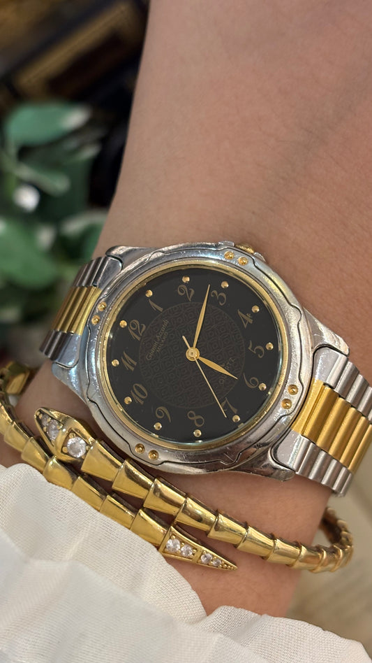 Vintage Gianni Accordi Sports Style Mens Classic Watch in Two-Tone Black Patterned Dial Quartz