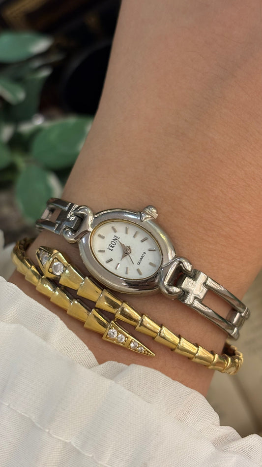 Dainty Vintage Krone Elongated Chain Link Semi-Bangle Watch in SIlver Tone Quartz