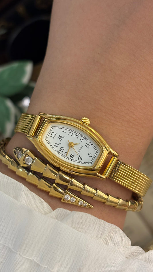 Dainty Vintage Montre Barrel Dial Mesh Watch in Gold Tone Quartz