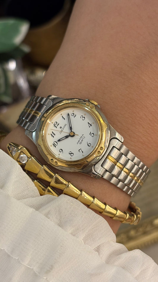 Vintage Junghans Sports Style Dial Gold Line Accent Watch in Two-Tone Quartz
