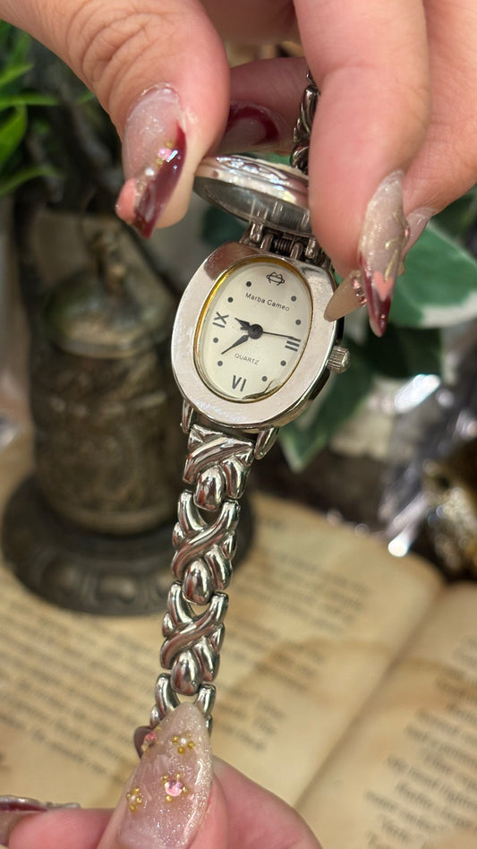 Extremely Rare Vintage Marba Green Cameo Peekaboo Watch in Silver Tone Quartz