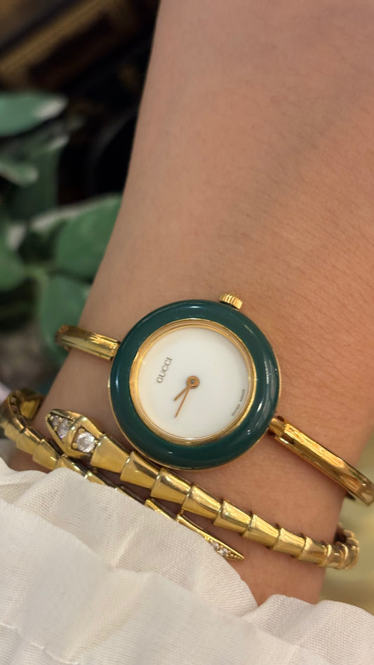 Extremely Rare Gucci Interchangeable Bezel Bangle Watch Set in Gold Tone Quartz Swiss