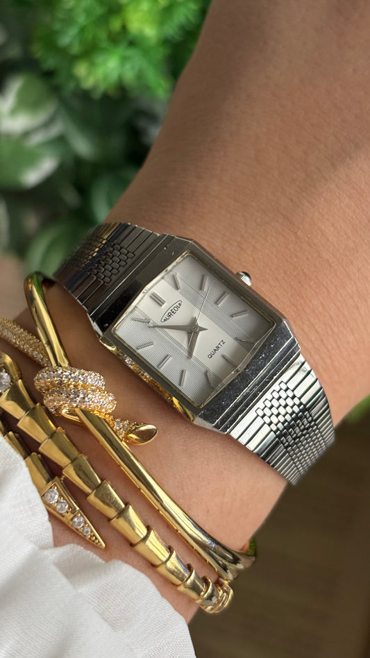 Vintage Izax Valentino Italy Tank Watch in Silver Tone