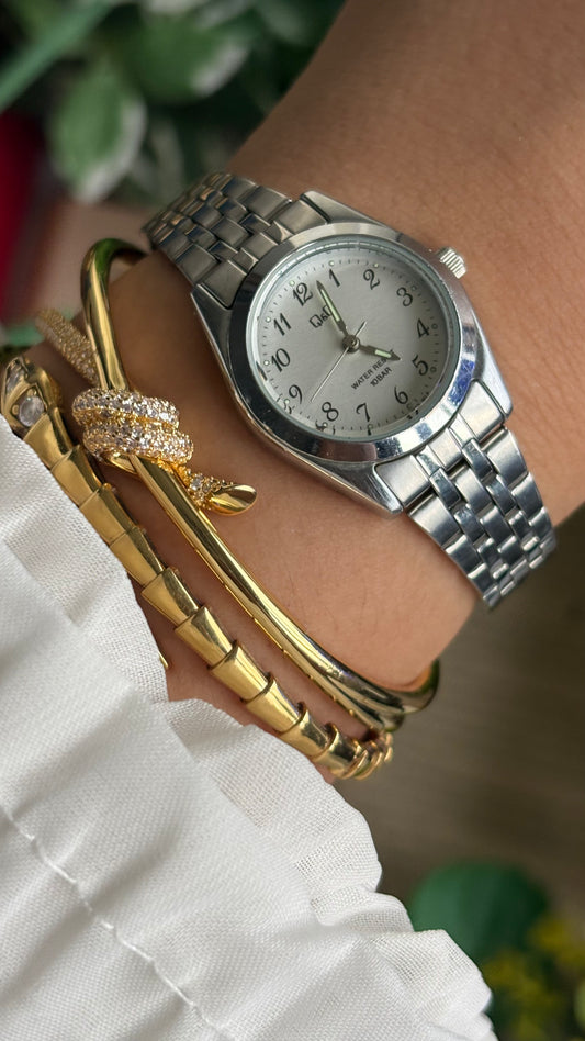 Vintage Cocco - Croco Watch in Gold Tone Gucci Style Bangle Pink Pearl Dial