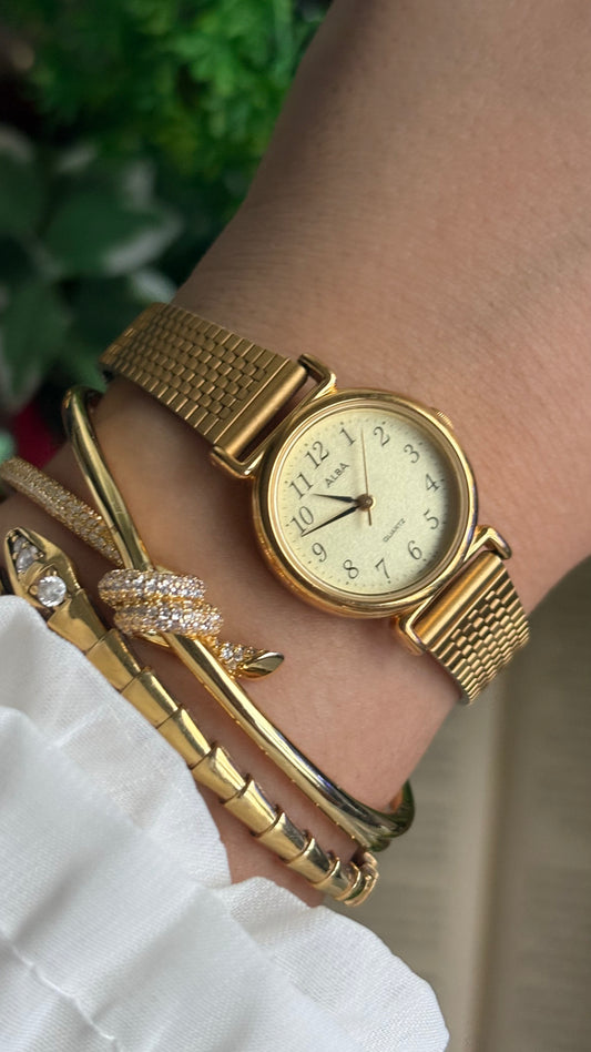 Vintage Alba Seiko Watch in Gold Tone Beautifully Textured Dial