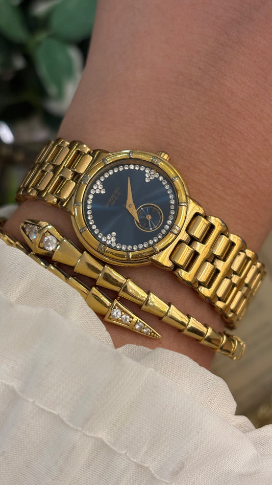 Rare Vintage Raymond Weil Diamond Encrusted Midnight Blue Dial Watch in 18k Gold Electroplated Tone Quartz