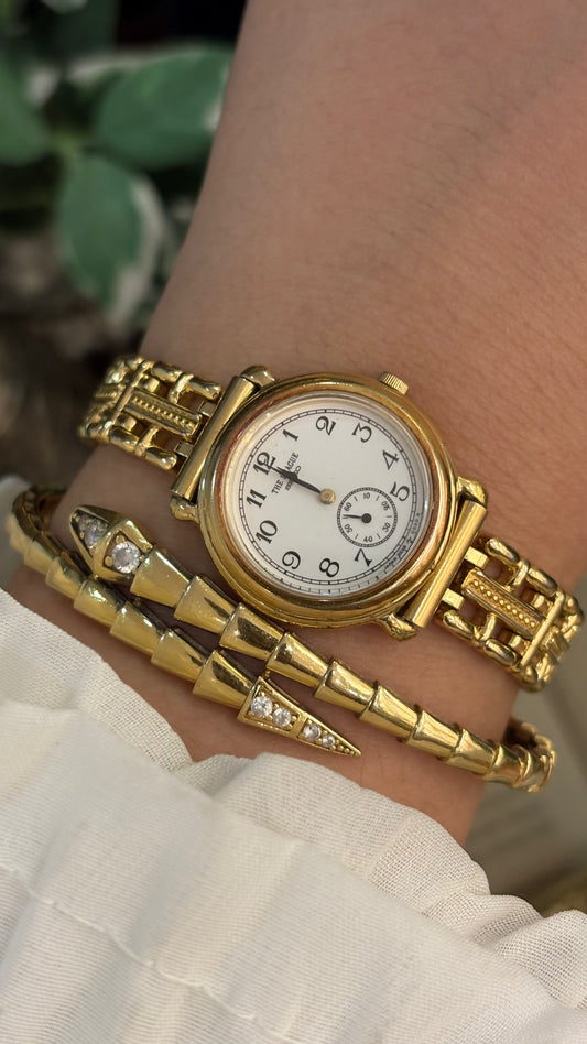 Rare Vintage Pedre Elegant Tri-band Bangle Watch in Gold Tone Quartz #00203