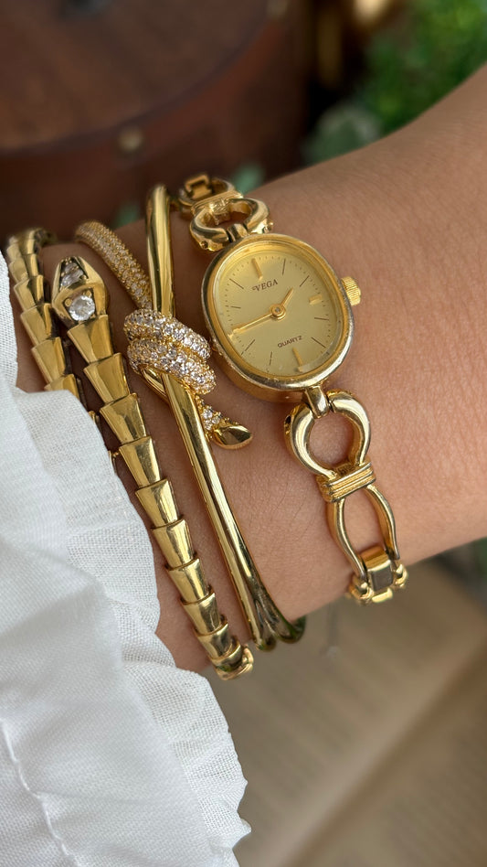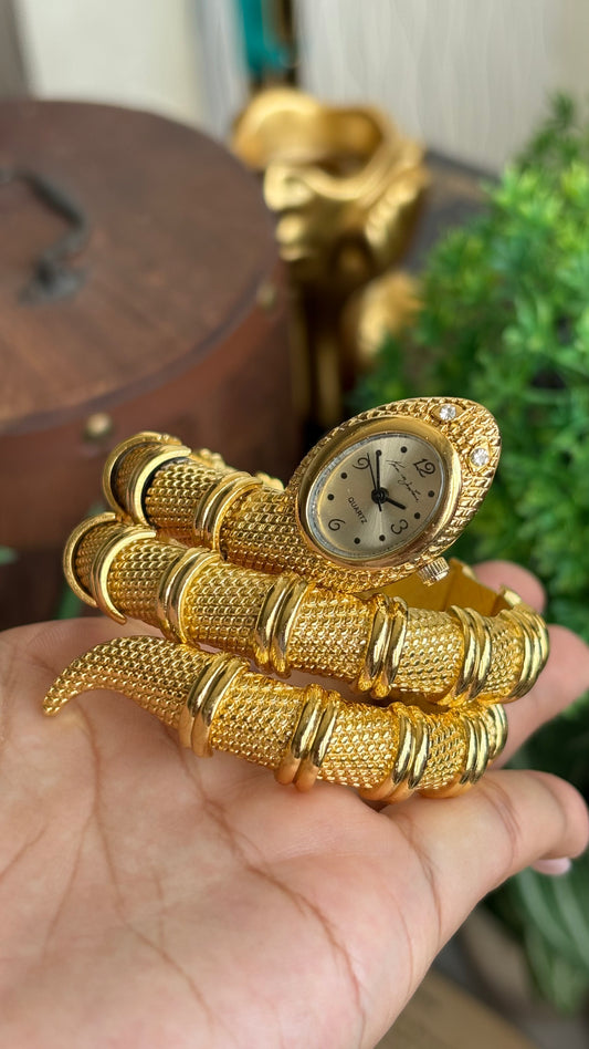 Vintage Kenneth Jay Lane Bvlgari Style Snake Layered Watch in Gold Tone