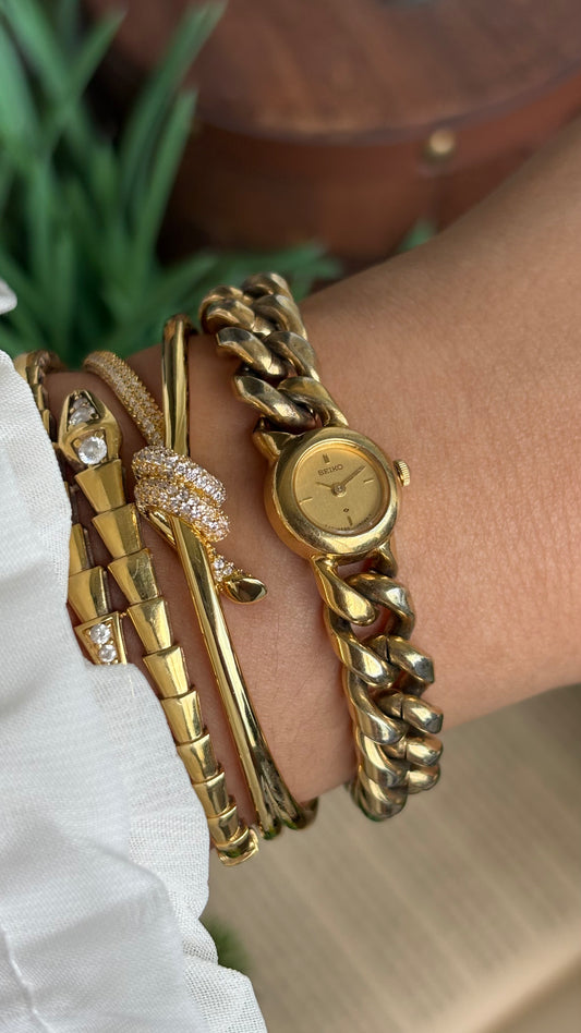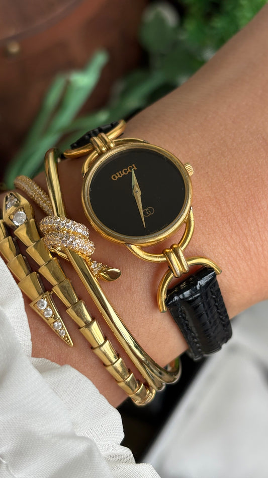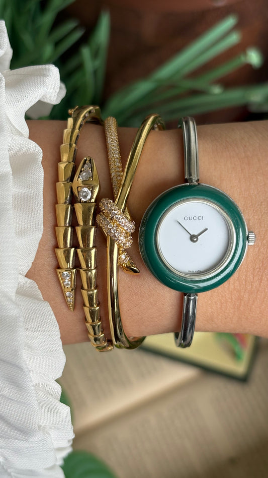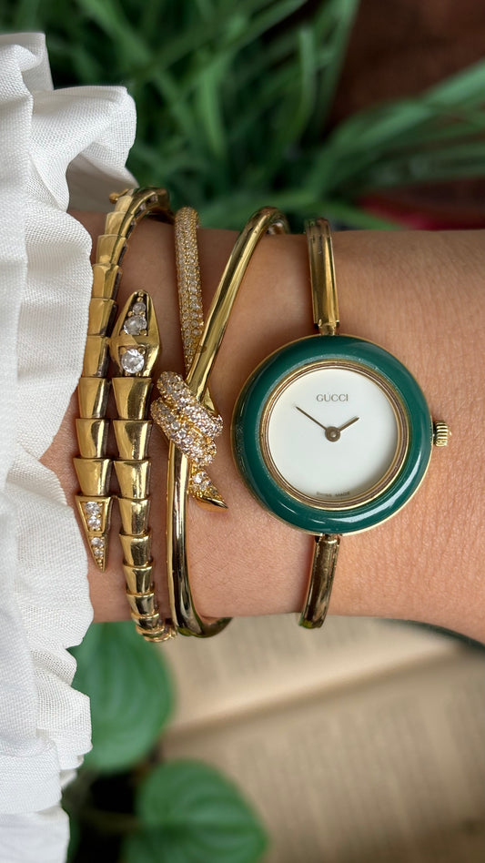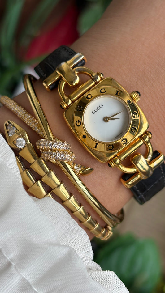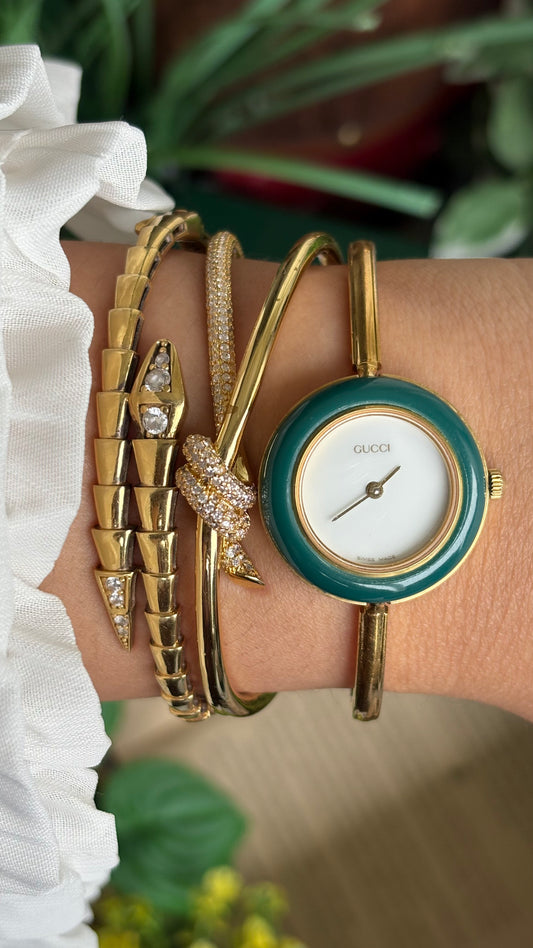 Vintage Gucci 1100L Interchangeable Bezel Set Bangle Watch in Gold Tone