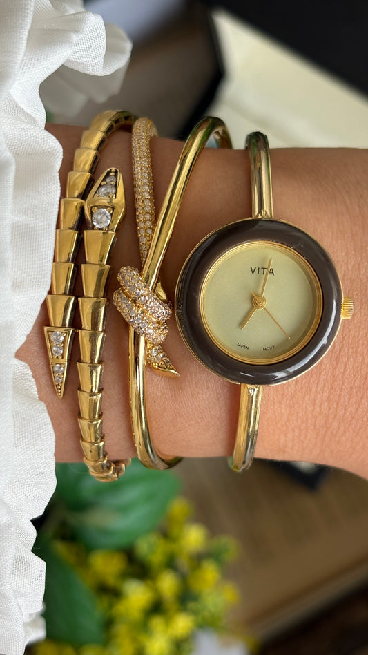 Vintage Vita Interchangeable Bezel Set Watch in Gold Tone Gucci Style