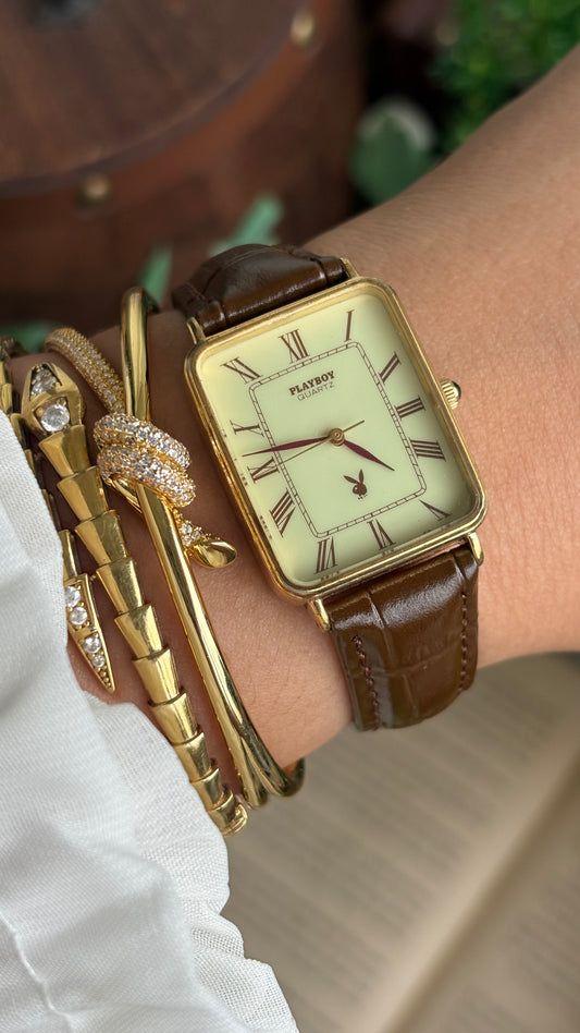 Vintage Seiko Playboy Men’s Tank Watch in Brown Leather Strap Roman Dial