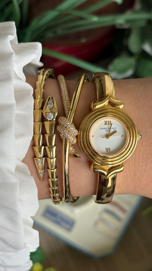 Vintage Marie France Interchangeable Bezel Set Bangle Watch in Gold Tone