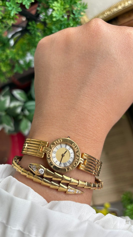 Vintage Leonard Swiss Designer’s Watch in Gold Tone Roman Dial