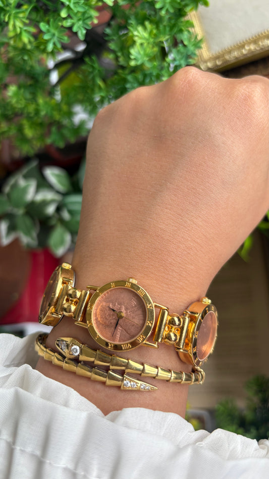 Extremely Rare Vintage Liberty 1978 Watch in Gold Tone Pink Dial
