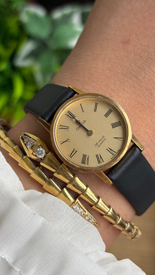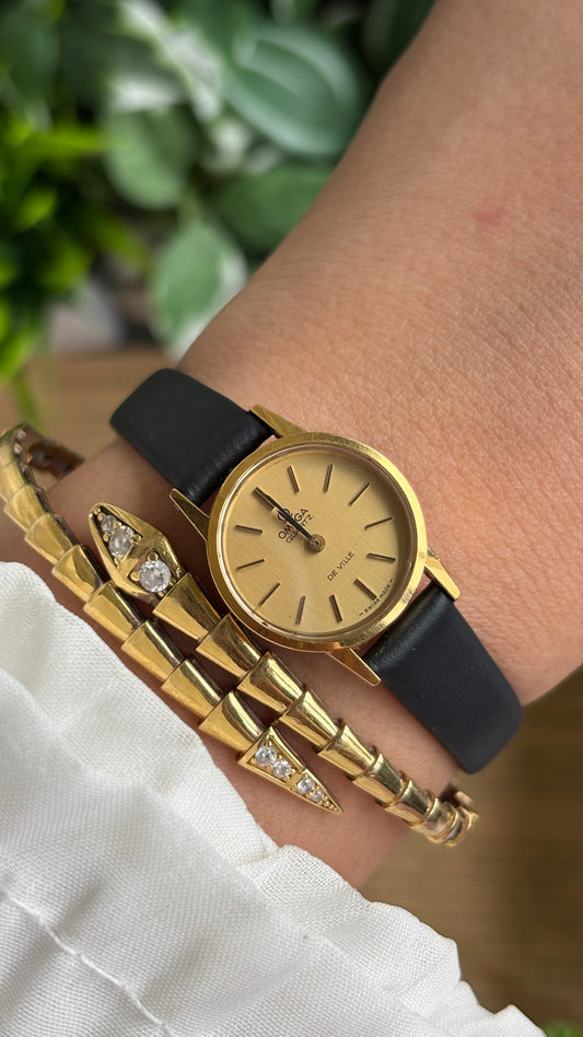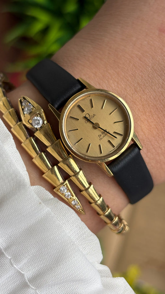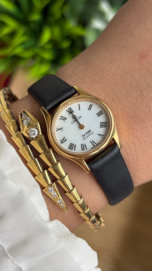 Vintage Omega De Ville Women’s Watch in Black Leather Strap with Omega Box