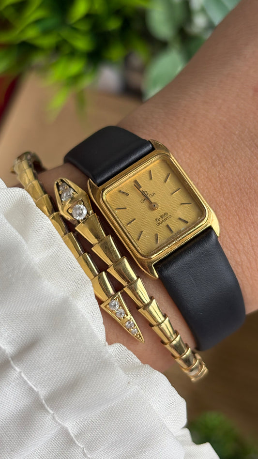 Vintage Omega De Ville Mini Tank Women’s Dress Watch in Black Leather Strap with Omega Box