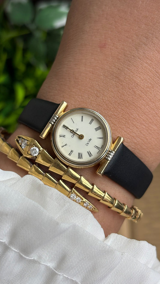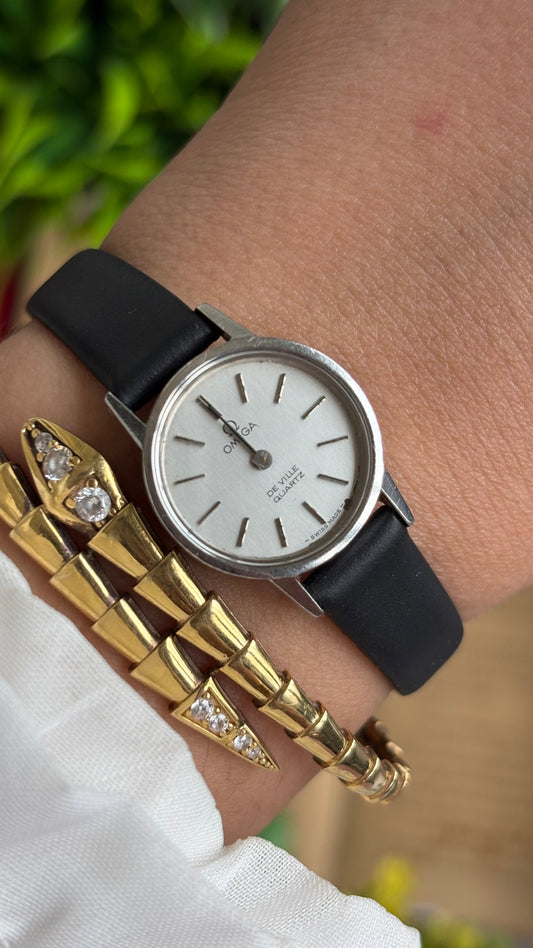 Vintage Omega De Ville Women’s Dress Watch in Black Leather Strap with Omega Box