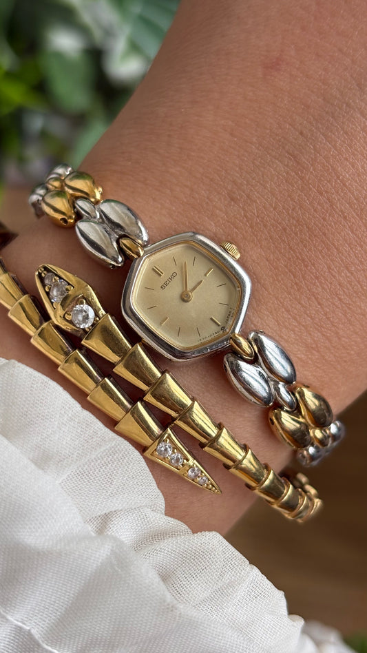 Extremely Rare Vintage Dainty Seiko Bracelet Watch in Two-Tone Rice Beads Link