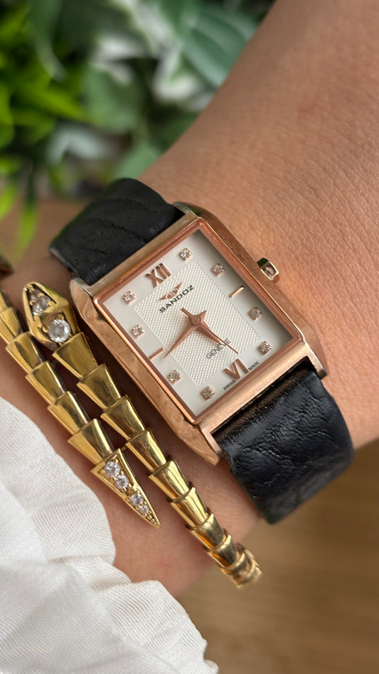 Vintage Sandoz Watch in Black Leather Strap