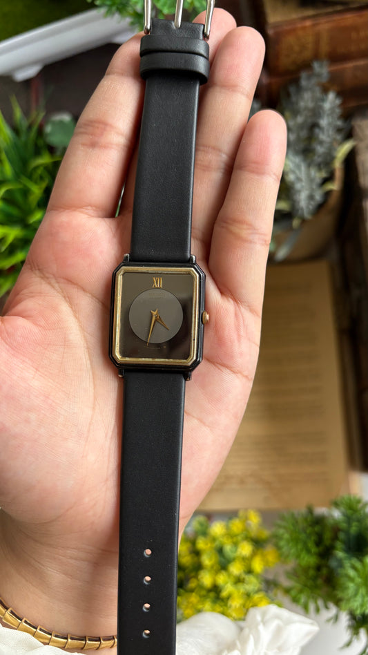 Vintage Seiko Japan Watch in Gold Tone Black Dial Square Face