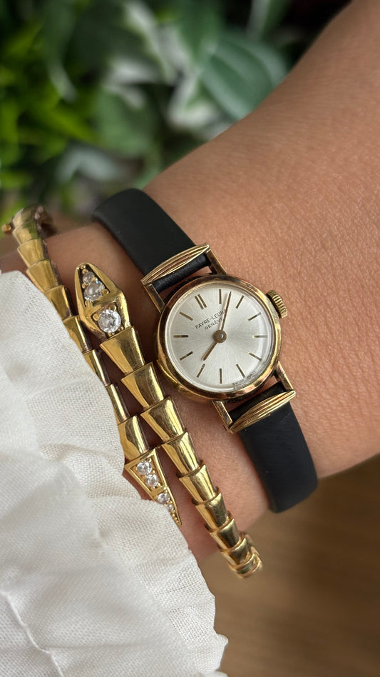 Extremely Rare Vintage Favre-Leuba Geneve Swiss Watch in Black Leather Strap