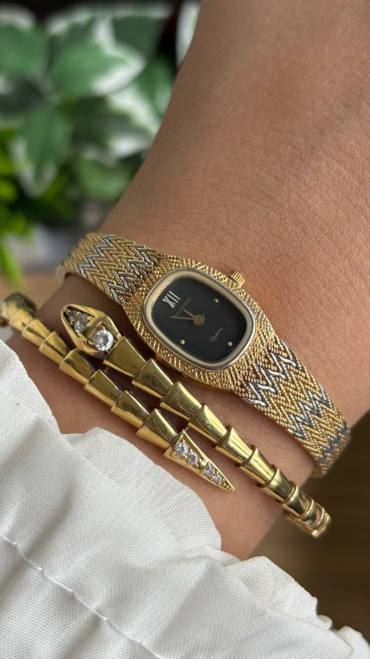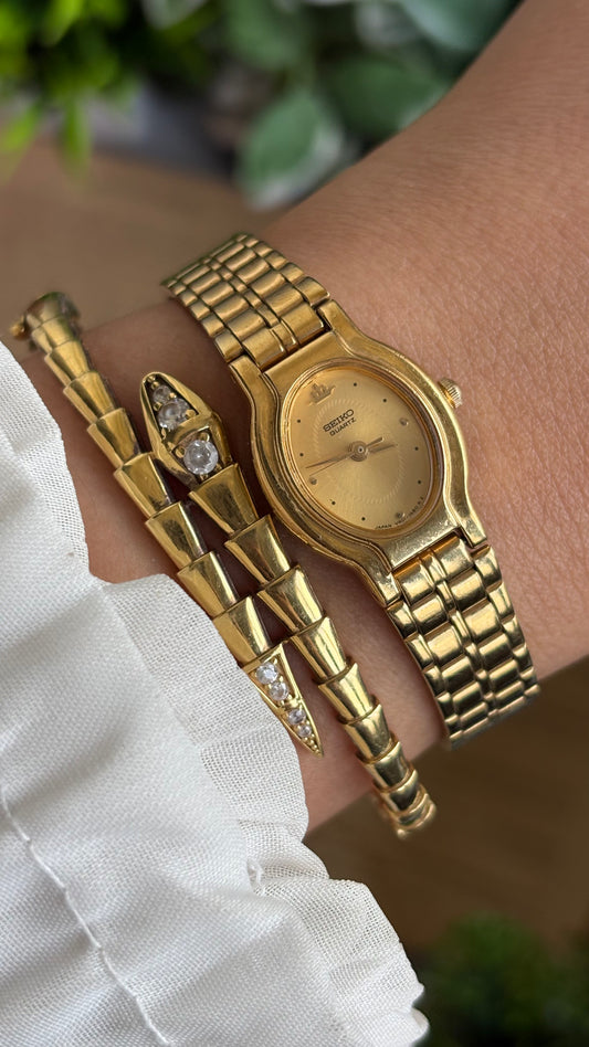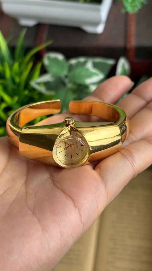 Extremely Rare Vintage Clowat by Seiko Bangle Watch in Gold Tone