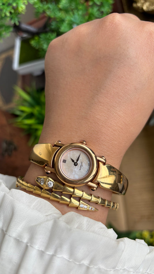 Vintage Givenchy Watch in Gold Tone Mother of Pearl Dial