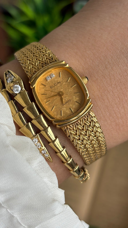 Vintage Elgin Watch in Gold Tone Rare Dial Design