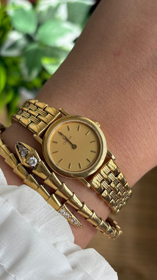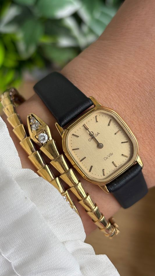 Vintage Omega De Ville Mini Tank Women’s Dress Watch in Black Leather Strap with Omega Box