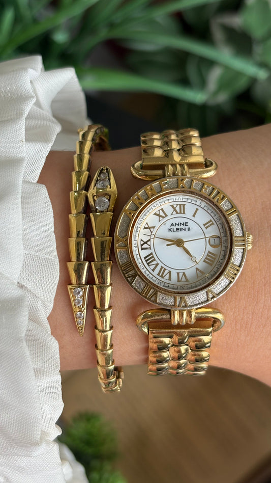 Vintage Anne Klein II Interchangeable Bezel Set Watch in Gold Tone