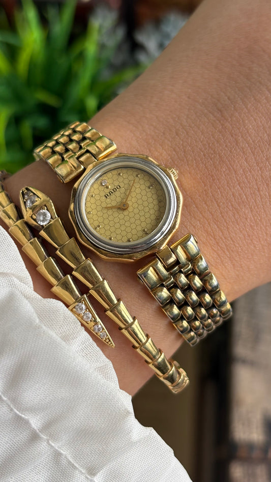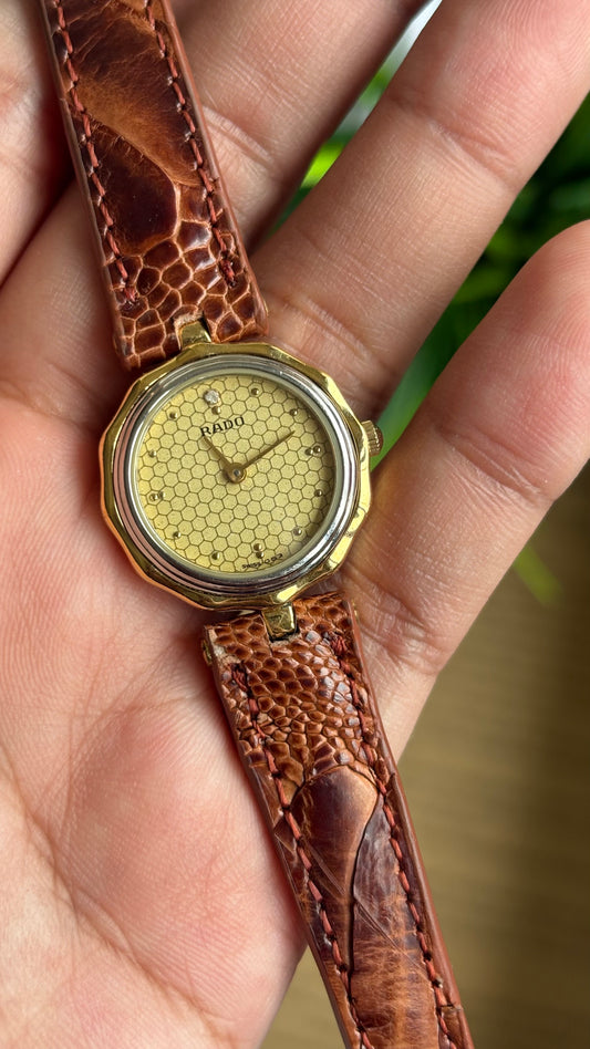 Vintage RADO Swiss Watch in Two-Tone Honeycomb Dial