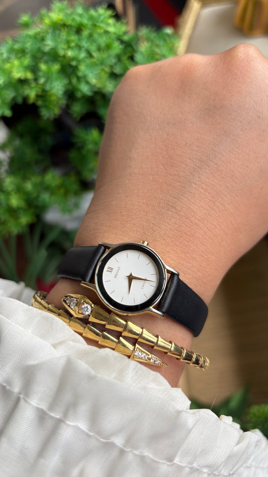 Vintage Seiko Exceline Watch in Black Leather Strap Very Luxurious
