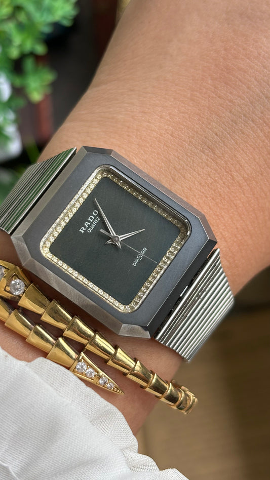 Vintage RADO DiaStar Watch in Silver Tone Black Dial