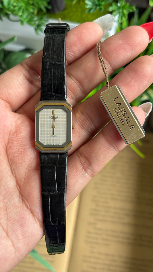 Vintage Lassale Seiko Watch in Black Leather Strap Textured Dial Comes with Original Tag and Strap