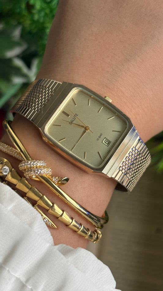 Vintage Salute Men’s Tank Watch in Gold Tone