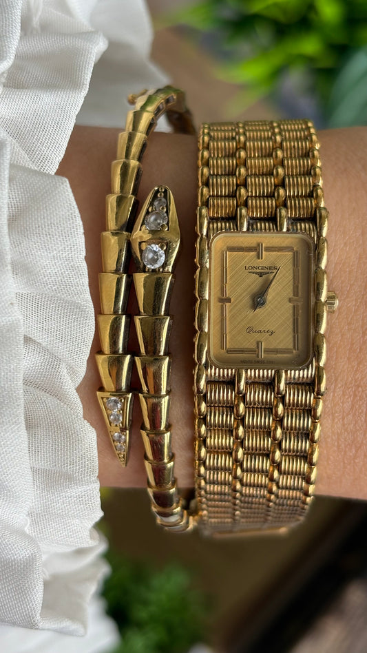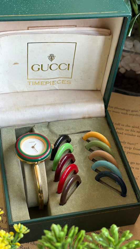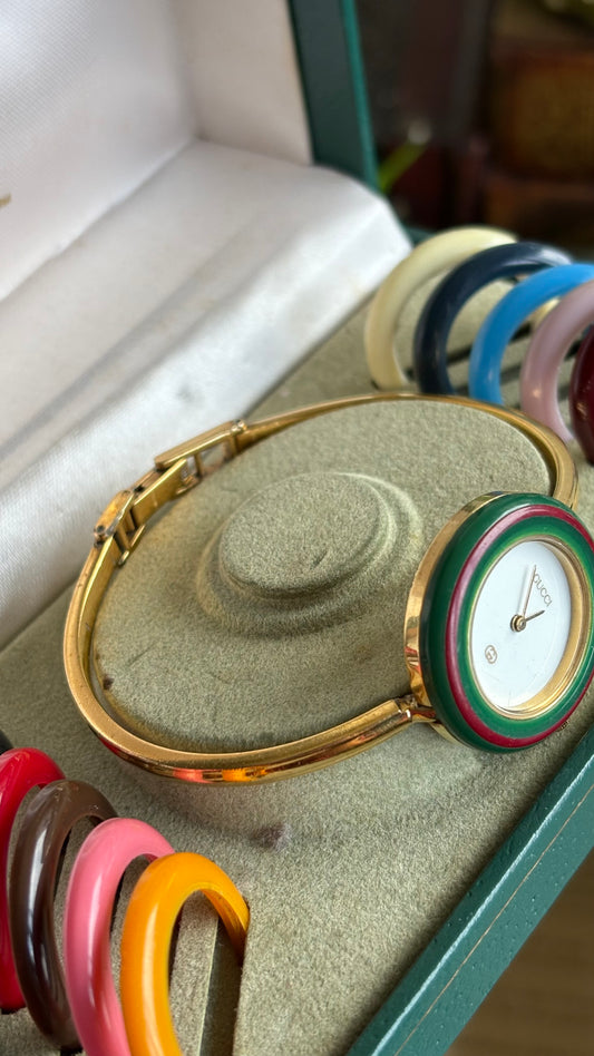 Vintage Gucci 1100L Interchangeable Bezel Set Bangle Watch in Gold Tone