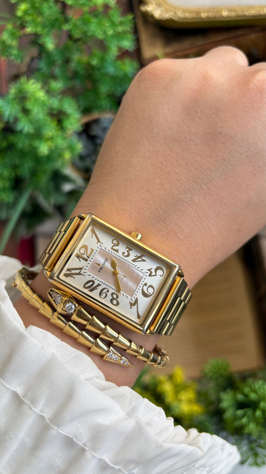 Vintage Pedre Tank Watch in Gold Tone Pearl Dial