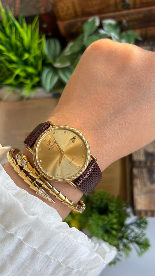 Vintage Raymond Weil Automatic Men’s Dress Watch in Brown Leather Strap with Date Just