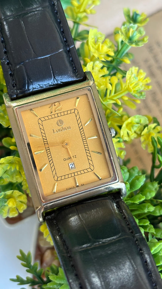 Vintage Lordson Men’s Tank Dress Watch in Black Leather Strap Sapphire Crystal with Date Just
